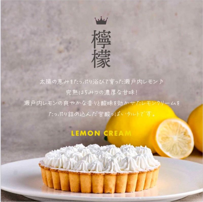 瀬戸内レモンの爽やかな香りと酸味を効かせたレモンクリームをたっぷり詰め込んだ、甘酸っぱいタルトです。