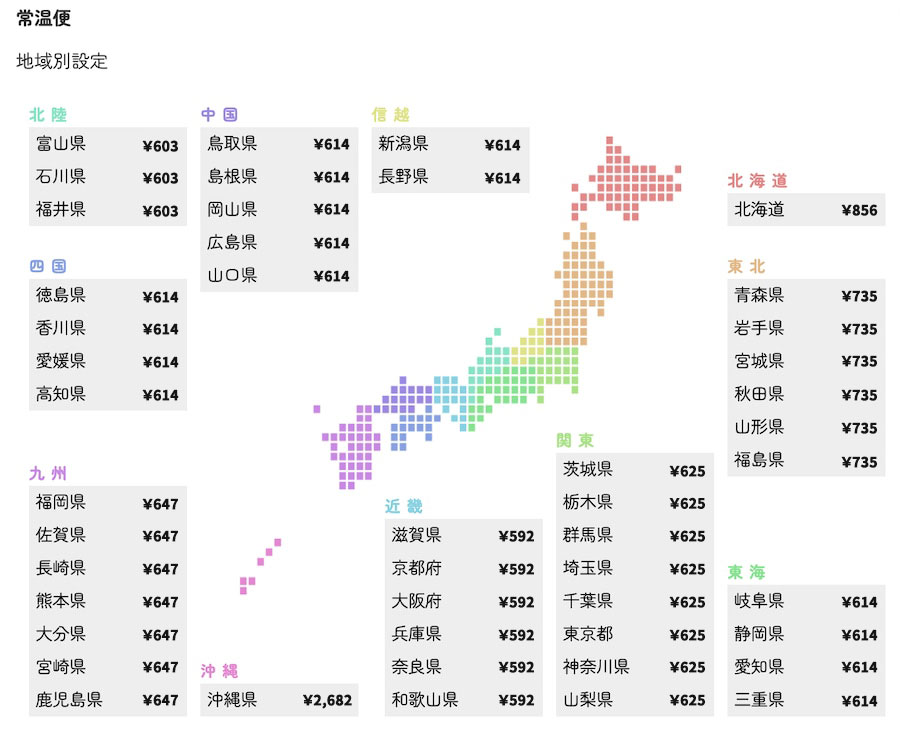 お届けの位置により以下の送料がかかります