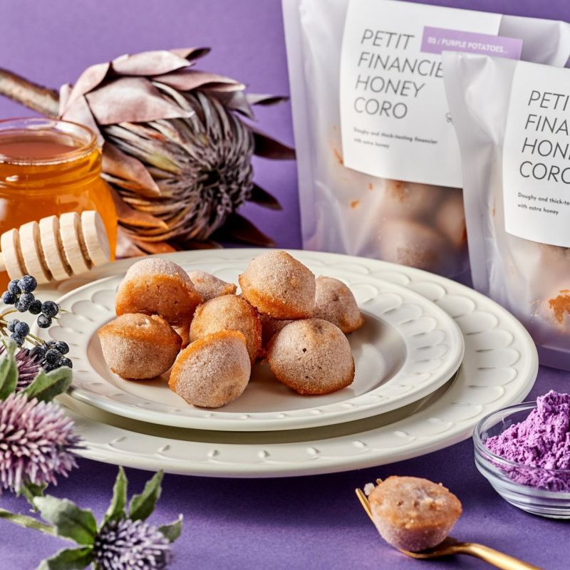 ハニコロフィナンシェ・紫芋はしっとりとした食感とほんのりとした甘さが人気の一品です。