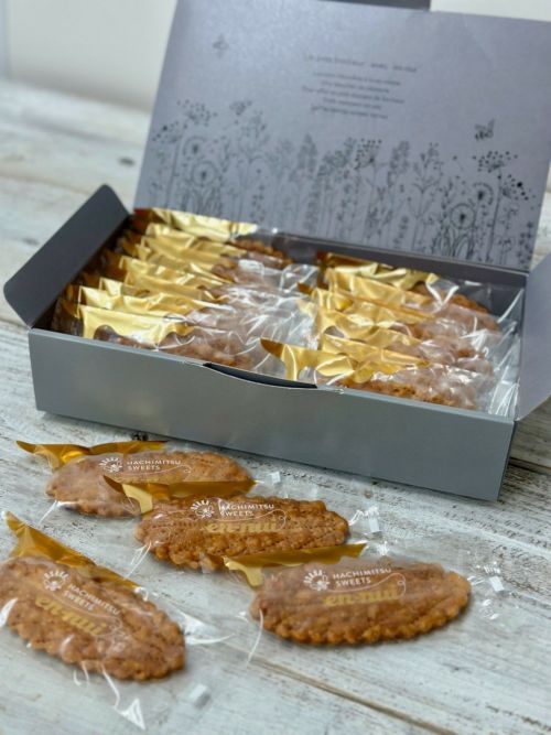 バターをたっぷり織り込んだパイ生地に、完熟はちみつをたっぷりつけて焼き上げたザクザクッと香り豊かな葉っぱ型のパイです。20枚入りギフトセットです♪