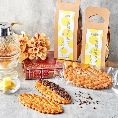 完熟はちみつをたっぷりつけて焼き上げた、ザクザクッとした葉っぱ型のパイ♪